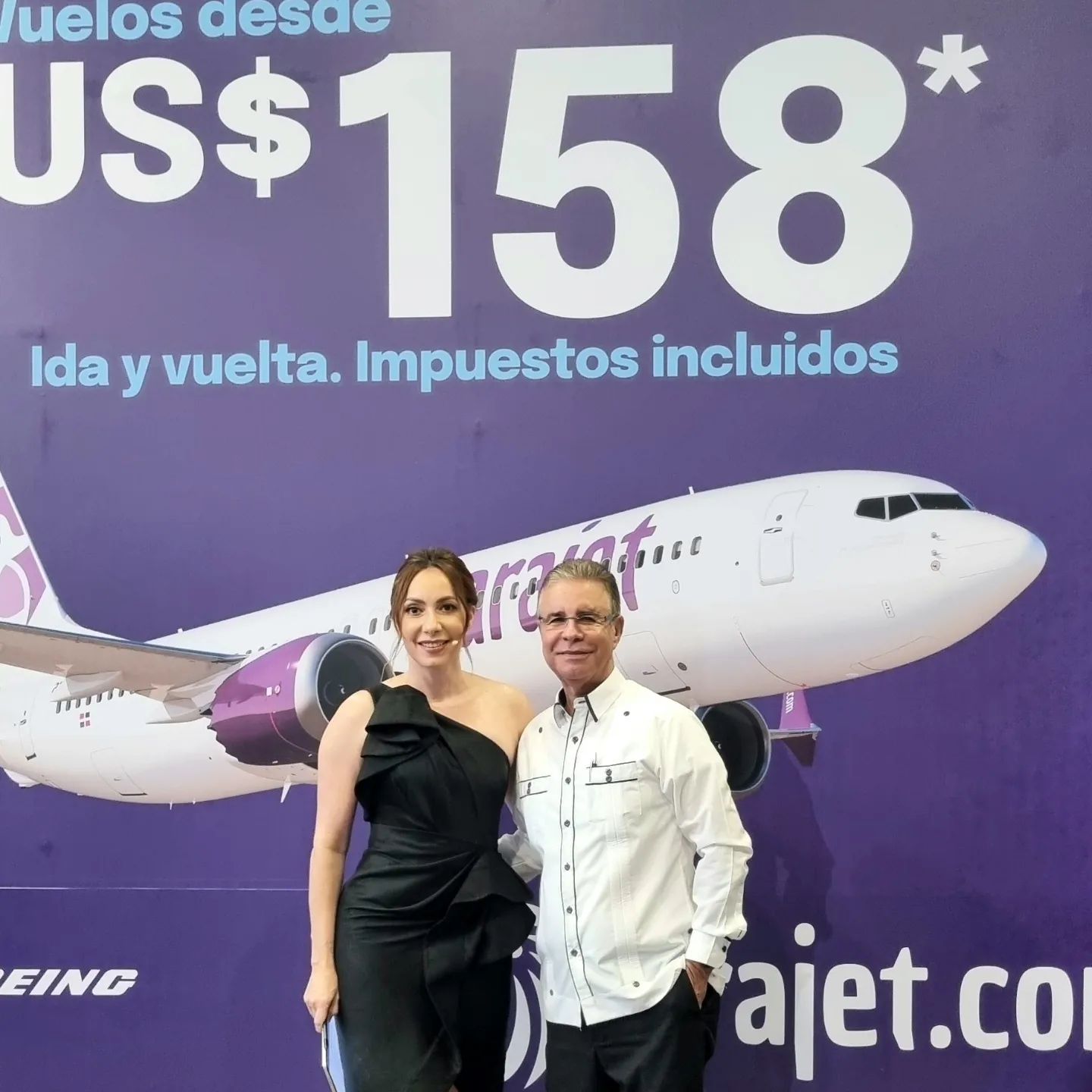 Luis José Chávez con la presentadora Miralba Ruiz en el acto de lanzamiento de las operaciones de la nueva línea dominicana de bajo costo ARAJET, que incluye inicialmente destinos de México, Perú, Colombia, Costa Rica. EL Salvador, Guatemala, Aruba, San Martín. Curazao, Ecuador, Canadá y Jamaica…
