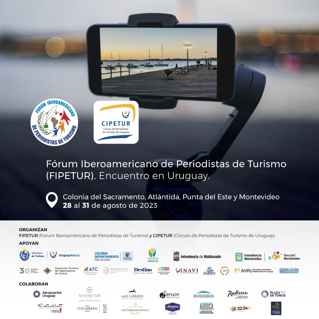 Uruguay Uruguay recibe al Fórum Iberoamericano de Periodistas de Turismo (FIPETUR) agosto 22, 2023 Las principales asociaciones de prensa especializada de América Latina y España, se reunirán en Uruguay, del lunes 28 al jueves...