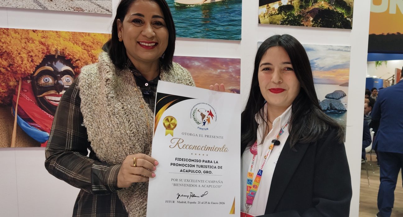ACAPULCO, GUERRERO. – La Federación Iberoamericana de Periodistas de Turismo (FIPETUR) otorgó un reconocimiento especial al Fideicomiso de Promoción Turística de Acapulco (FIDETUR), destacando la efectividad de sus estrategias para reposicionar al puerto en el escenario mundial.
